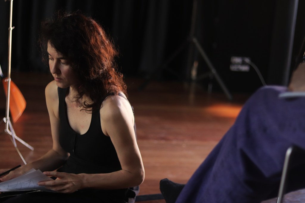 Résidence de création pour le spectacle Roudalf dans le bel auditorium de la médiathèque du Bois-Fleuri à Lormont, avec Ariel Tintar et Amélie Lepeytre.